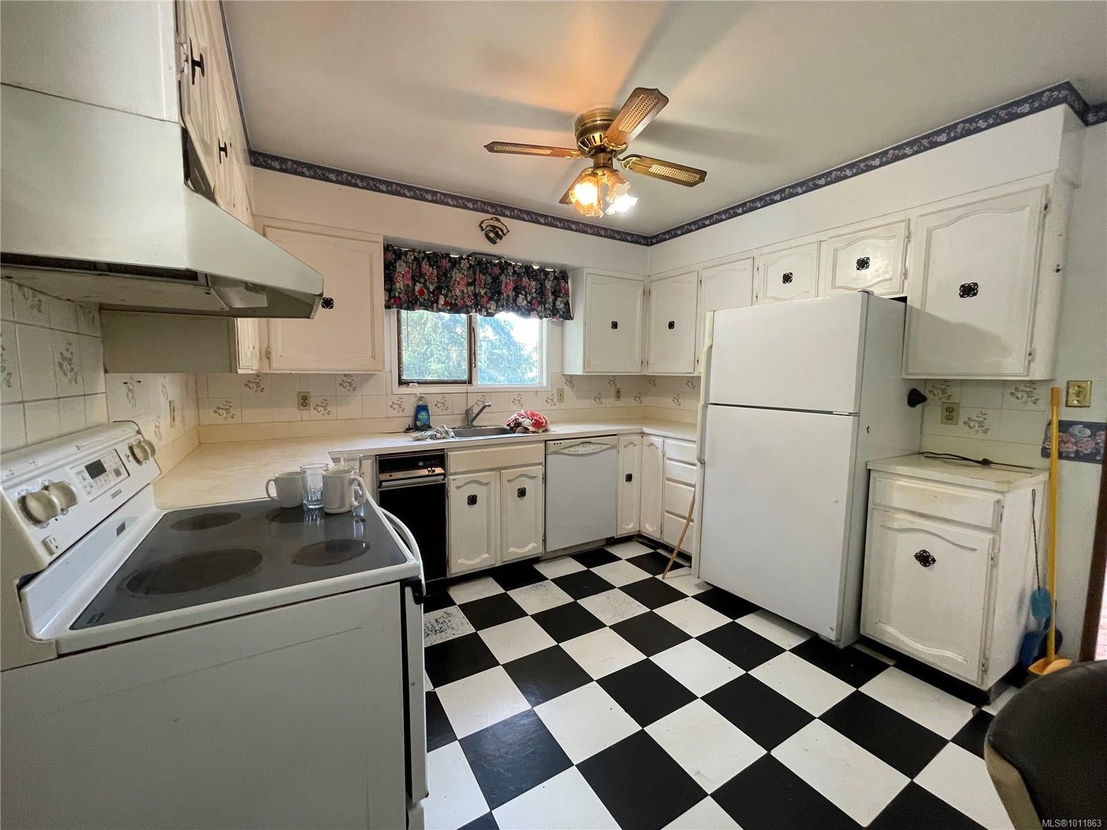 Welcome to this spacious 2,600+ sq ft family home nestled on a private one-acre lot in desirable Cherry Creek. This two-storey residence offers 5 bedrooms and 3 bathrooms, providing ample space for families of all sizes. The upper level features a bright, eat-in kitchen with direct access to a covered deck—perfect for year-round outdoor dining—along with a large living room and formal dining area. Three bedrooms are located upstairs, including the primary with its own 2-piece ensuite. Downstairs, you'll find a generous family room, two additional bedrooms, a 3-piece bathroom, a large laundry room, and an in-house workshop for hobbyists or extra storage. The partially treed yard offers plenty of space for gardens and kids to run and play and backs onto the scenic Log Train Trail. Completing the package is a massive 30x43 ft shop with 200 amp service and overheight doors—ideal for hobbies, toys, or your dream workspace. A rare find in a sought-after location! All measurements are approximate and must be verified if important.