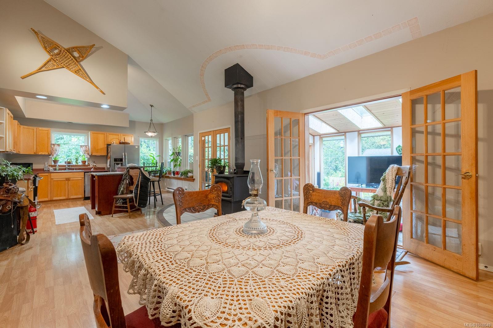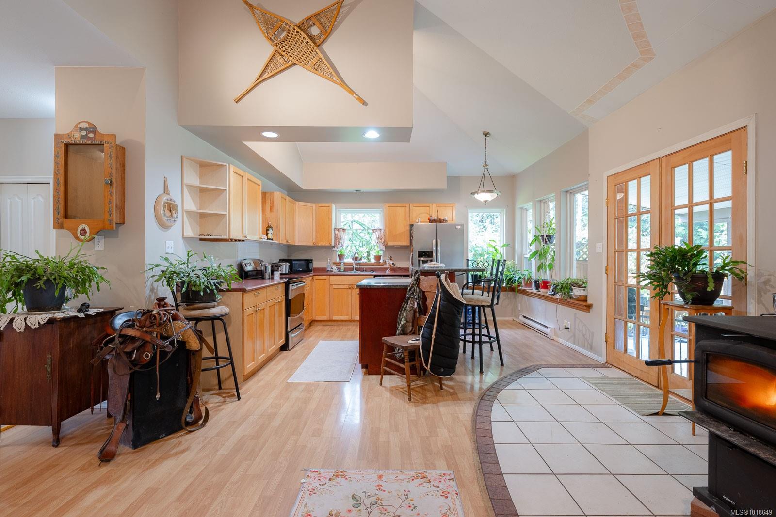 Charming West Coast Half Duplex nestled on a quiet street in Bamfield, gateway to Barkley Sound at the heart of Pacific Rim National Park, home to rich and abundant marine life making for world class fishing, diving, kayaking, boating and hiking. This spacious 2-bedroom, 2-bath half duplex offers over 1,500 sq. ft. of comfortable coastal living. Enjoy 9-foot ceilings throughout, soaring 16-foot vaulted ceilings in the great room, and the cozy warmth of a woodstove. The kitchen features rich wood cabinetry, a functional island, and French doors leading to a covered patio—perfect for year-round enjoyment. A bright sunroom/family room floods the space with natural light, while the primary bedroom includes a walk-in closet and a 4-piece ensuite. Outside, the large yard offers gardens, ample parking, an attached garage, and a detached wired shop. Experience true west coast living on your doorstep. All measurements approximate, verify if important.