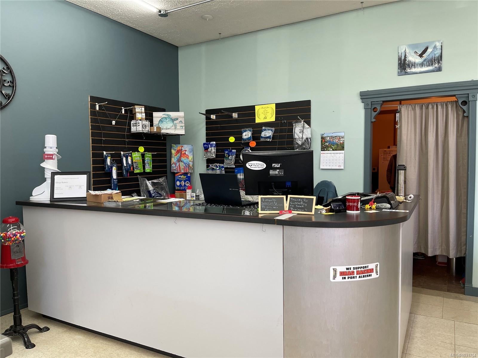 Commercial lease opportunity in Uptown Port Alberni! This 838 sq ft C7-zoned retail space offers a versatile layout ideal for a variety of business uses. The front retail area features a service counter perfect for customer interaction, while the back workspace provides functionality and flexibility for operations. Additional highlights include multiple storage areas, a kitchen, and two bathrooms—offering convenience for both staff and clients. Situated within a retail complex, this location is close to breweries, bakeries, and an array of unique local businesses. An excellent opportunity to establish or grow your business. Measurements approximate, must be verified if important.